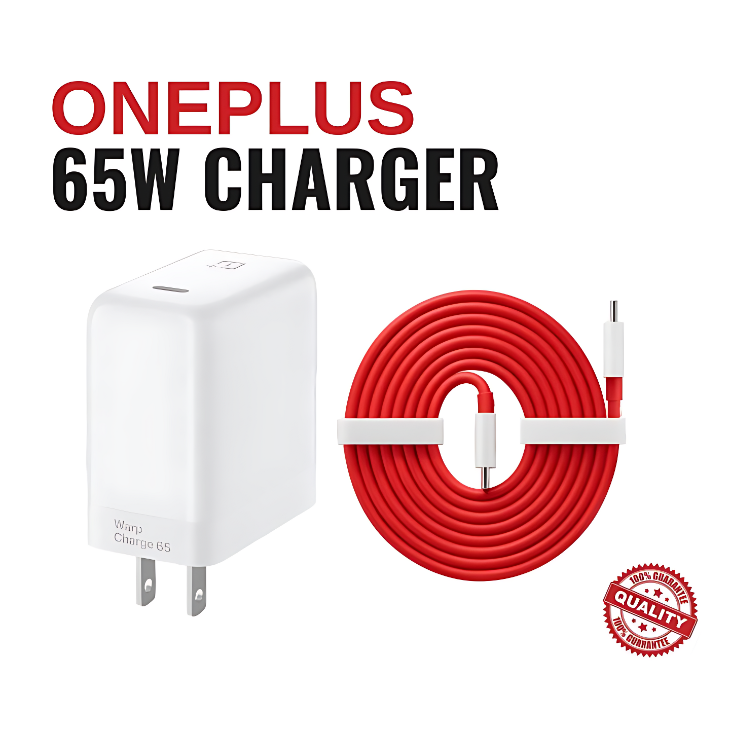 - OnePlus Charger 65 Watt Power Adapter + Cable Faster, cooler, safer A day’s power in 15 minutes Speed for all your devices